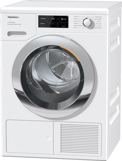 T1 Heat-pump tumble dryer with SteamFinish, DryCare 40 and SilenceDrum for gentle drying.